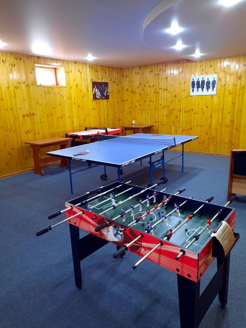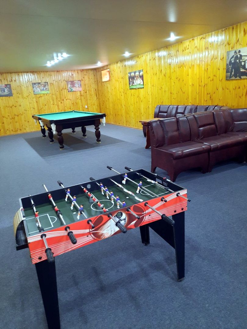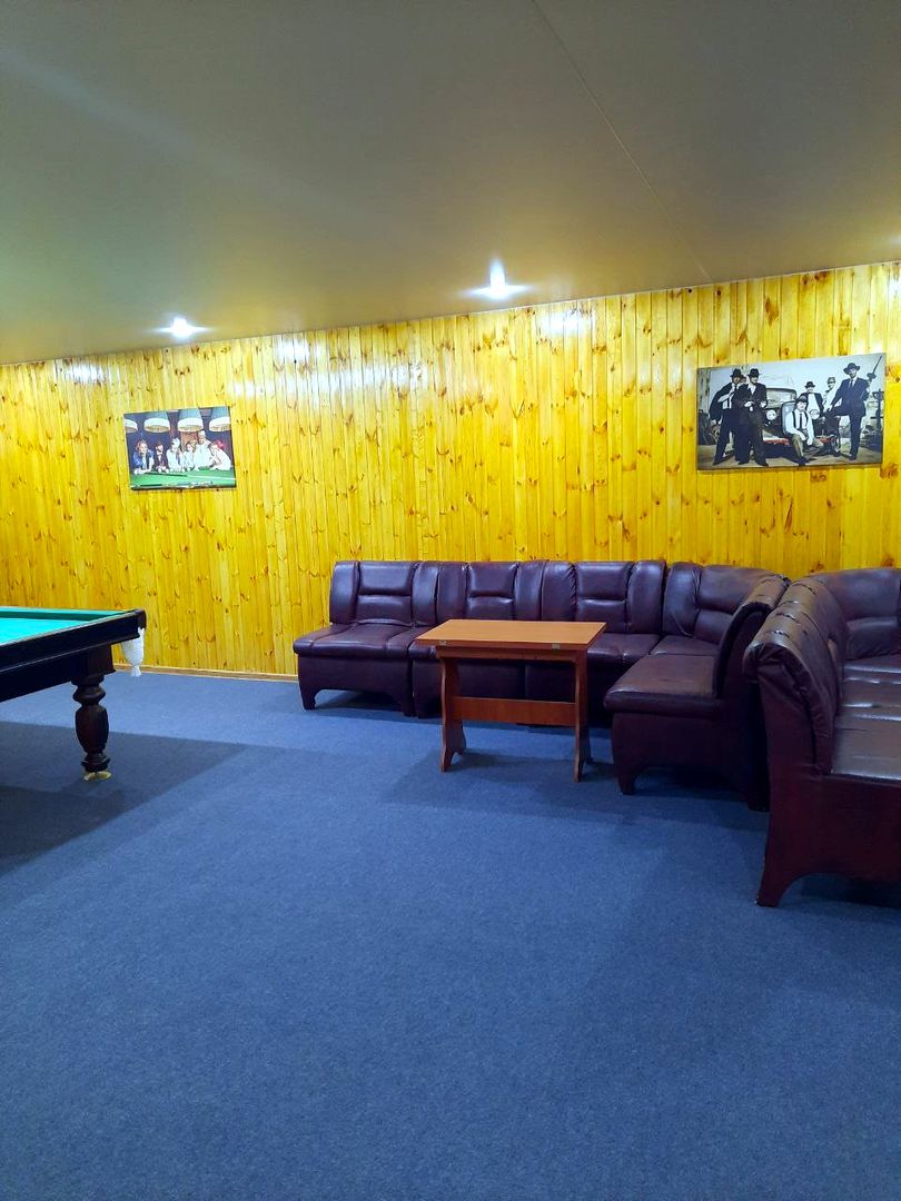 Комфортная лаунж-зона с диваном и бильярдным столом
