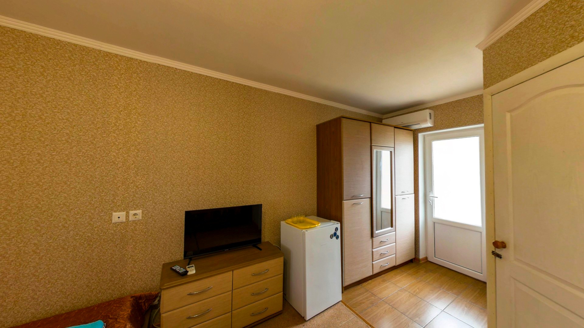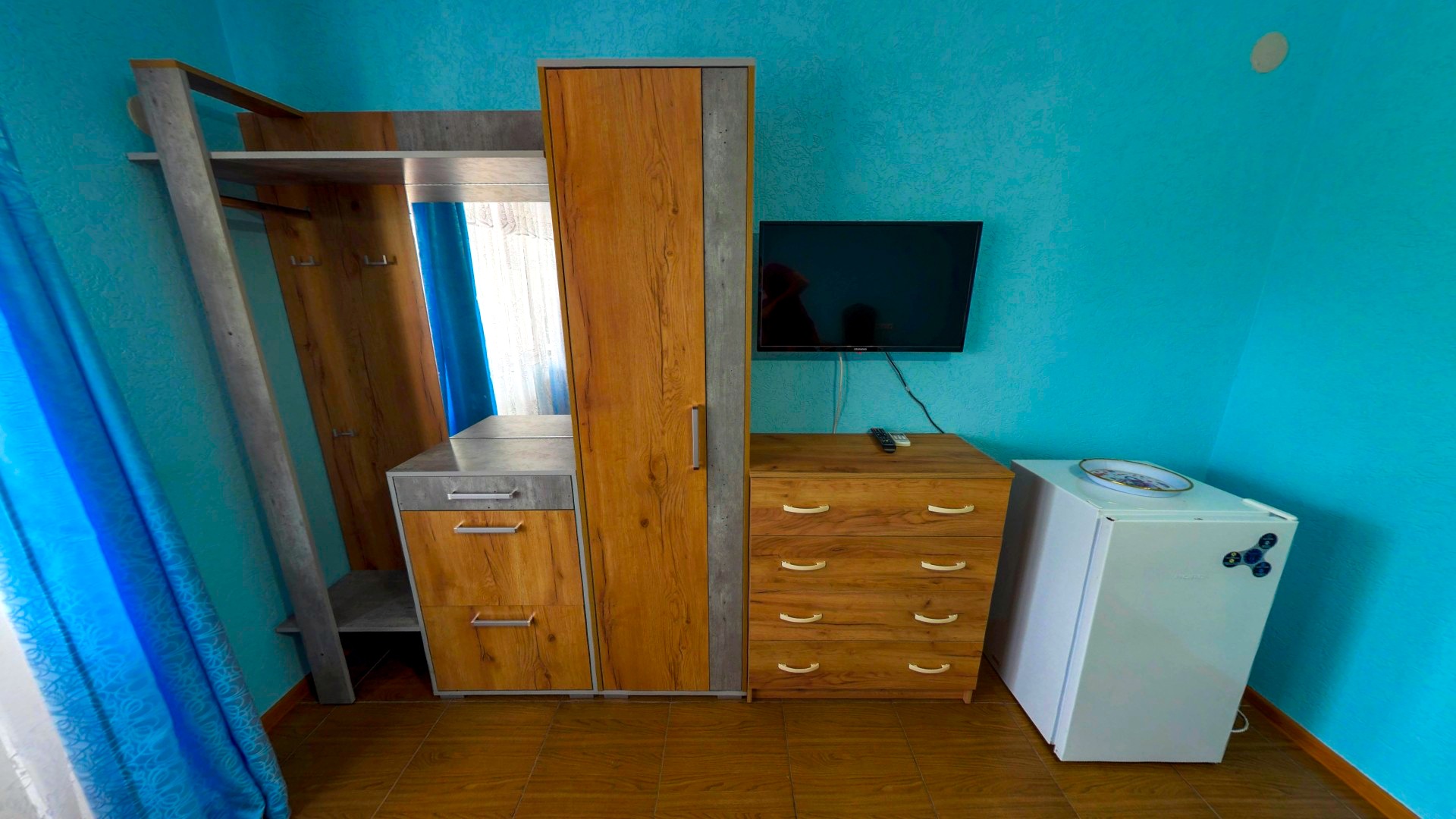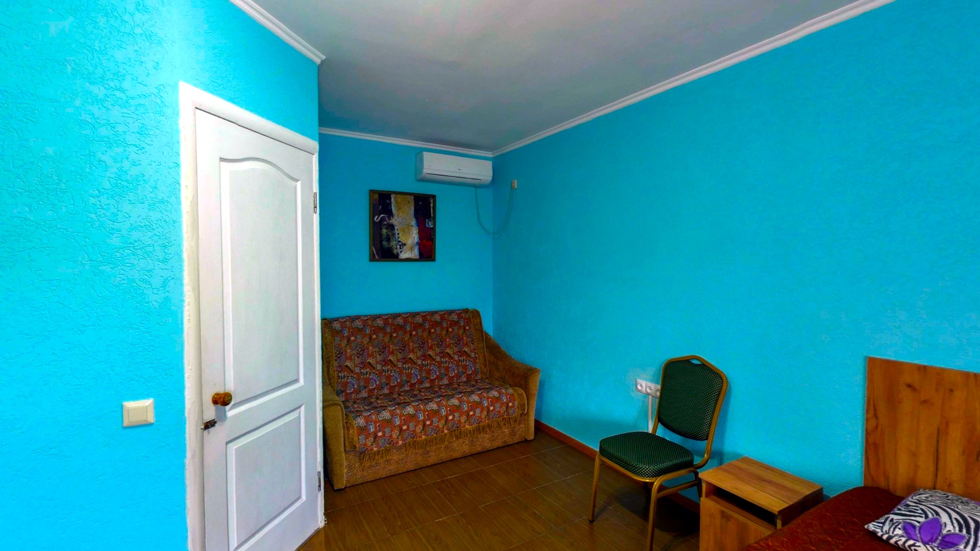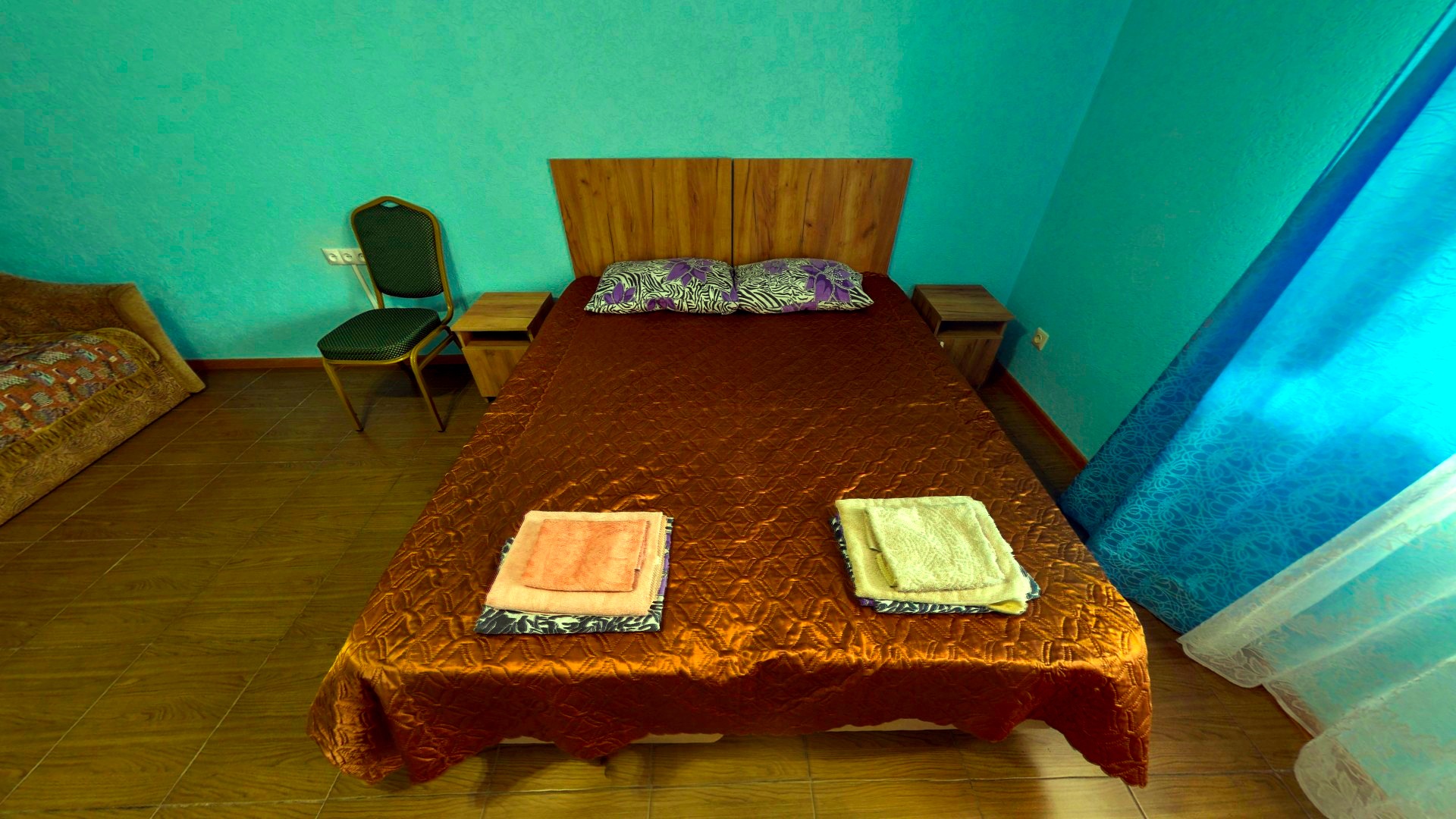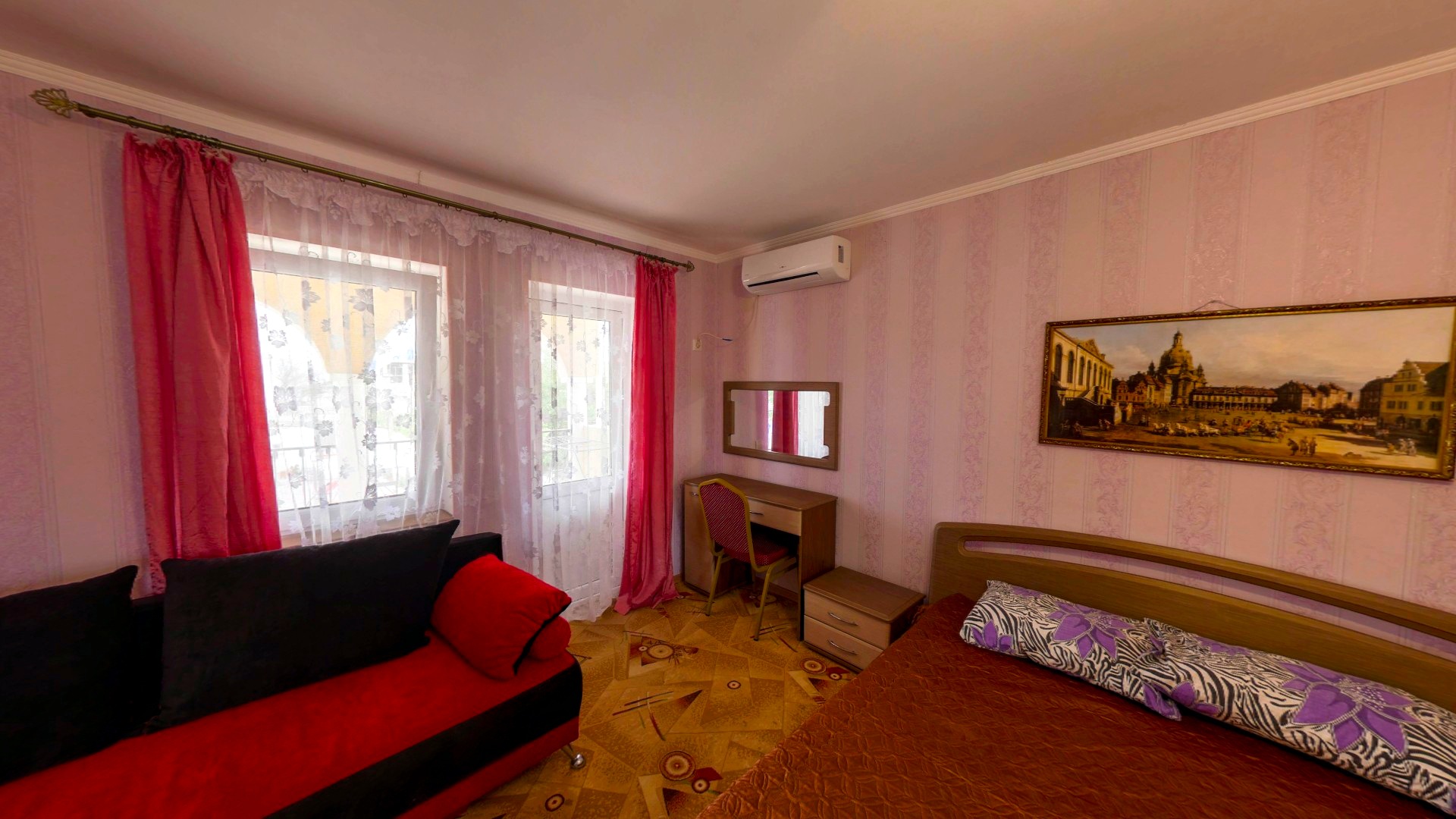 Номер в 2-х этажном корпусе АФИНА. 1-но комнатный,24м2 + терраса 8м2. Рассчитан на 2х гостей. Допускается 2 доп. места. В Номере 2-х спальная 160х200 или два спринг-бокса 090х200 . Шкаф, тумбочки, комод, трюмо, стулья, ТВ, холодильник, кондиционер. Чайный набор. В каждом номере сан/узел с душевой кабиной и феном. На террасе стол, стулья. Вид на бассейн.